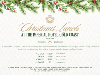 moreDine in luxurious and festive surroundings this Christmas at Imperial Hotel Gold Coast, where elegance meets the magic tradition of Christmas.