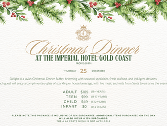 moreDine in luxurious and festive surroundings this Christmas at Imperial Hotel Gold Coast, where elegance meets the magic tradition of Christmas.